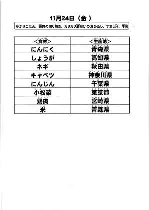給食食材の産地情報