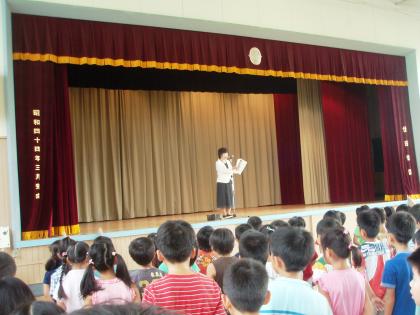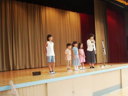 始業式では校長先生のお話の後、新しく転入してきた友達の紹介がありました。今回は、1年生に3人、4年生に1人の転入がありました。はやく東玉川小学校になれてくださいね。