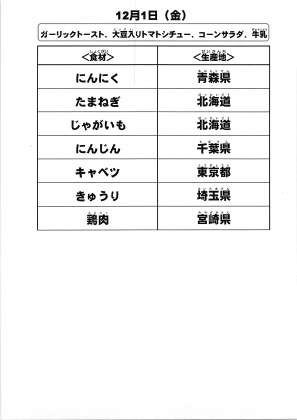 給食食材の産地情報