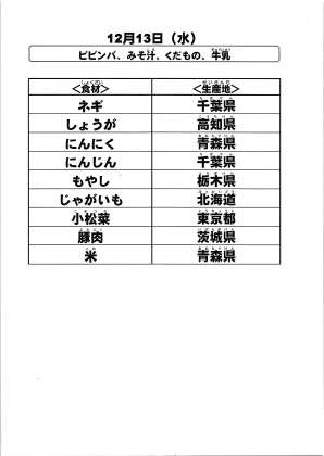 給食食材の産地情報