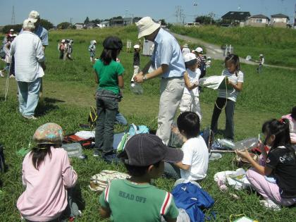 9月9日 3年生と一緒に、校外学習で等々力渓谷と多摩川の河原へ行ってきました。晴天で残暑厳しい一日でしたが、さすがに多摩川の河原は、さわやかな風が心地よく、子どもたちは虫取りに熱中していました。