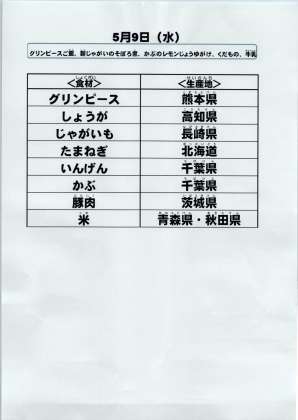 給食食材の産地情報