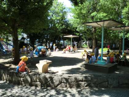 今日、1年生は、生活科の学習「あそびにいこうよ(夏の公園)」で学校の近くにある石川公園に行きました。