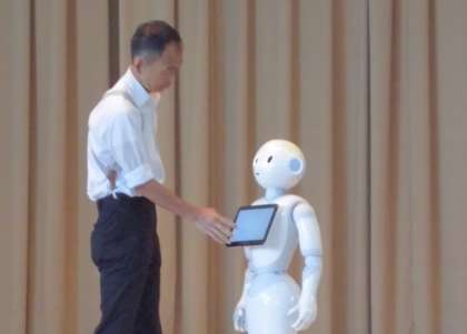 それにともない今回、お借りすることとなったロボット「Pepper」を本日、全校朝会で、子どもたちに紹介しました。