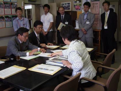 3時間目に4年2組の総合的な学習の時間、「こちらエコライフ研究所」の授業を参観されました。大臣は環境学習に大変関心があるとのことでした。その後屋上庭園に上がられ、整備された屋上花壇を見ていただきました。4時間目は1年1組の日本語の授業を参観していただきました。子ども達の音読に大変感心していただきました。