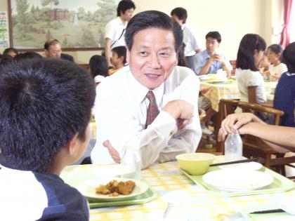 給食も授業を見ていただいた4年2組の子ども達と食べていただきました。子ども達一人一人に声をかけていただきました。