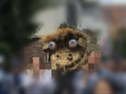 わらで作られた大きな蛇がたくさんの人に担がれて町中を練り歩きました。
