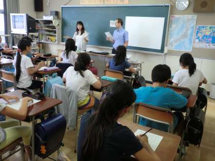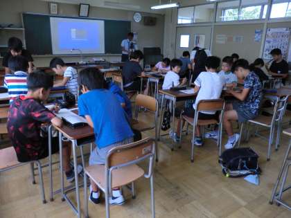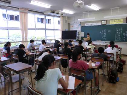 その後、国語、社会、数学、理科、音楽、英語のクラスに分かれ、中学校の先生による授業を受けました。