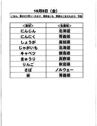 給食食材の産地情報