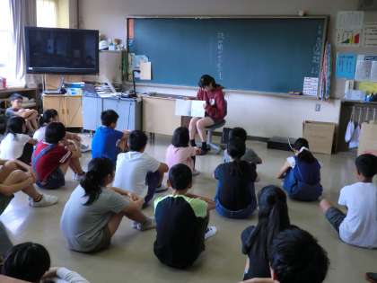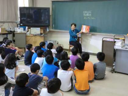 毎週火曜日の朝の時間は、読書タイムになっていますが、月に1回、「おはなしたまご」の皆さんに読み聞かせをしていただいています。