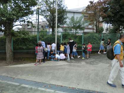 3時間目に視聴覚室でいろいろな種を紹介していただいた後、校庭に出て、種を探しました。校庭でもいろいろな種を見つけることができました。