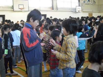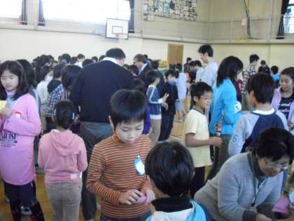 ゲーム終了後、七色のカードを集めた人たちでステージは、いっぱいになりました。