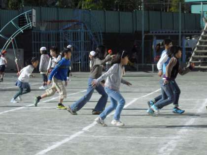 今日は、どこの班かまよっている1年生もなく、校庭や屋上で班ごとに楽しく遊びました。6年生をはじめとした高学年が、低学年にやさしく教えてあげる姿がどの班にもみられました。「学校は、しなければならないことと、してはいけないことが多い」とある子が言っていましたが、集会や行事は子どもたちの創意工夫が生かされるためか、どの子も生き生きとしています。異学年交流は、子どもたちのコミュニケーション力を高めていると実感できますので、今後も続けていきたいと思います。