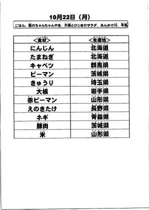 給食食材の産地情報