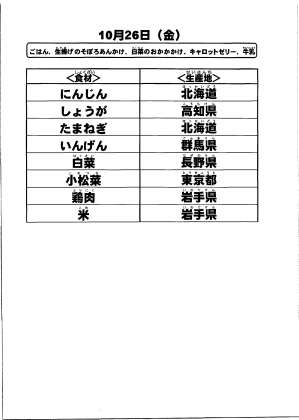 給食食材の産地情報