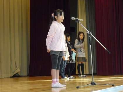 終業式は、体育館で行いました。個々に努力してきたこと、学級・学校・地域行事で協力して取り組み成長してきたことなどを振り返りました。特に、言葉による「伝える力」を、授業中のみならず学校生活全般を通して鍛え、コミュニケーション力が高まってきたことを確認しました。