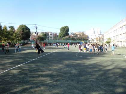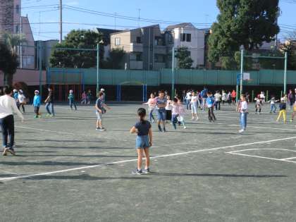前夜の雨が残り、屋上は使えませんでしたが、朝から天気も良く暖かい日差しの中、校庭や教室で1年生から6年生までの子どもたちが楽しく活動することができました。