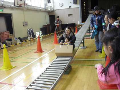 体育館では、子どものお店の他に、魚つりゲームやローラーコースターもあり、多くの子どもたちが楽しんでいました。