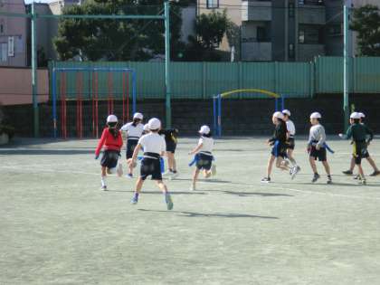 毎年、4年生はこの時期に体育でタグラグビーに取り組んでいます。