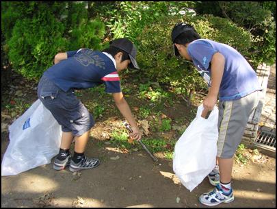右:公園のごみ拾いもしました。