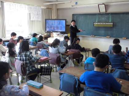 3年生が、そろばん教室の先生からそろばんの使い方について