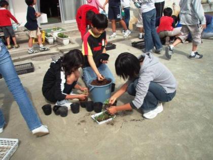 校内で育てたパンジーは、6年生の卒業式にきれいな花を咲かせてくれることでしょう。