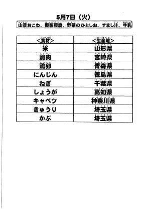 給食食材の産地情報