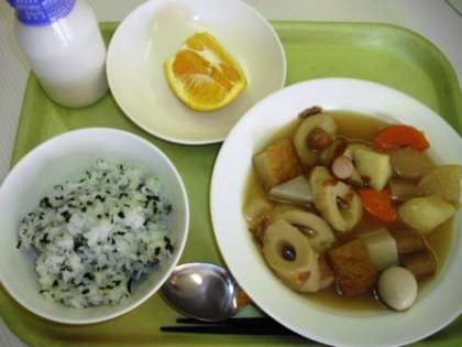 2月15日(火)わかめごはん、洋風おでん、いよかん、牛乳