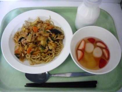 2月16日(水)キムチあんかけ焼きそば、フルーツ白玉、牛乳