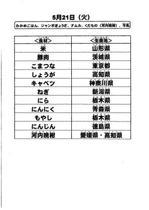 給食食材の産地情報