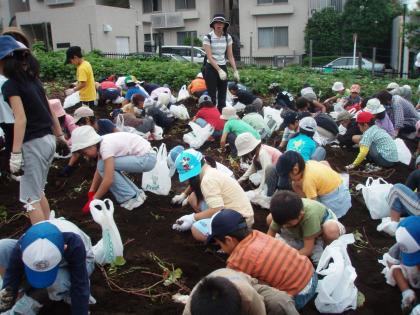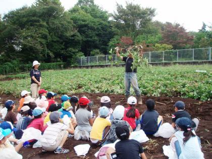 今日は秋空がとてもまぶしい天気で、絶好の校外学習びよりでした。学校から緑が丘まで歩き大井町線で上野毛まで、中町小で休憩の後、秋山農園に向かいました。