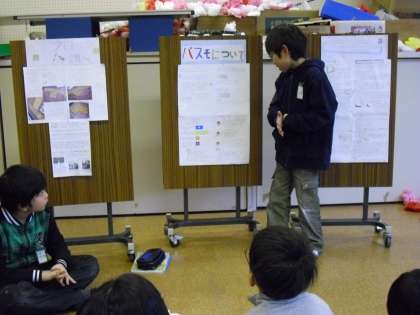 グループごとの発表が終わると、聞いていた子どもたち一人ひとりが感想を述べました。どのグループも、本やインターネットで調べるだけでなく、実際に見たり、インタビューしたりしてまとめていました。