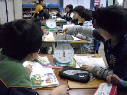 「同じ体積でも、重さはちがうんだね。」と言いながらノートに書いていました。