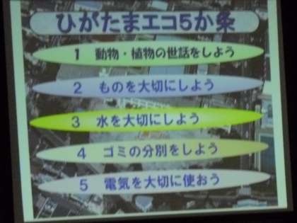 エコ・栽培委員会が「ひがたまエコ5カ条とエコキャップ回収」の取り組みについて発表しました。