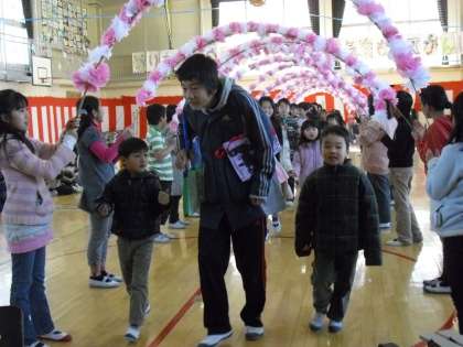 最初に、お世話になった1年生が6年生を案内して入場しました。