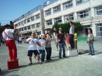 ほかにも、障害物競走やつな引きなど、子ども達や保護者のみなさんと一緒に教員も参加させていただいています。