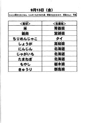 給食食材の産地情報