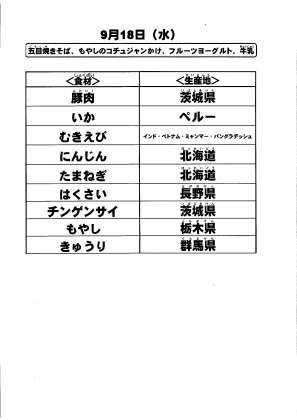 給食食材の産地情報