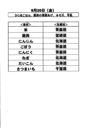 給食食材の産地情報