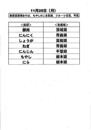 給食食材の産地情報