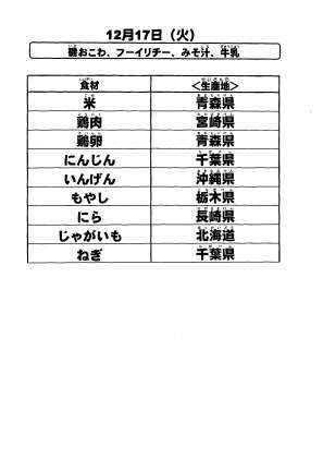 給食食材の産地情報