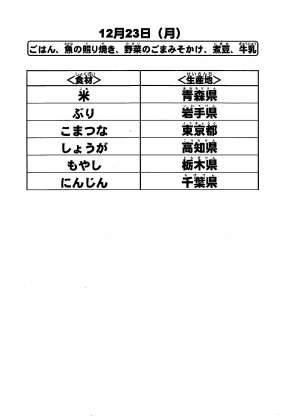 給食食材の産地情報