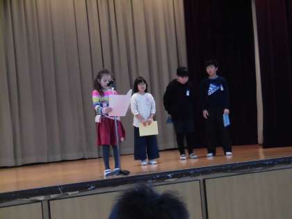 今日は、2学期最後の日でした。終業式では、校長先生から「ひがたま発表会」でがんばったことをほめていただいたり、冬休みには心と体をゆっくり休めてほしいと、お話をいただいたりしました。児童代表のみなさんからは、2学期にがんばったこと、できるようになったことなどの発表がありました。