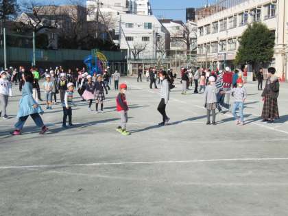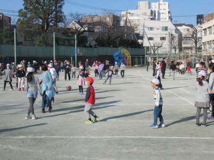 とても天気がよく、暖かかったので校庭で遊ぶ班は、