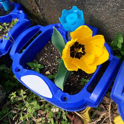 2年生が、1年生のときにうえたチューリップがさいていたようすです。