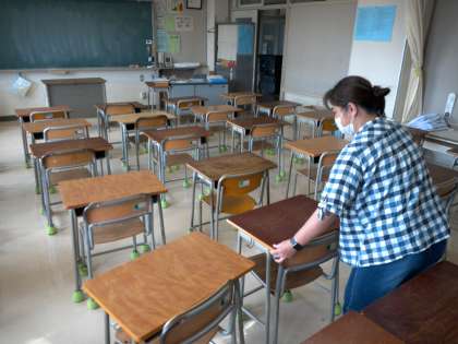 分散登校の開始に向け、教室環境の整備を進めています。
