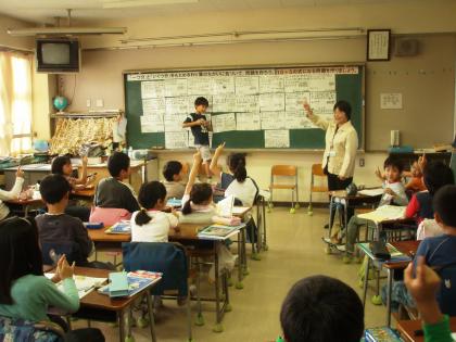 わり算で、式をもとに、問題をつくる学習をしました。3年生の子どもたちは、ふだんの生活の中にある物のなから、素材を選びたくさんの問題をつくりました。友達のつくった問題にも関心を向けていました。