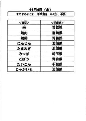給食食材の産地情報