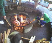 無事に火が起き、飯ごうをのせました。うまく炊けるかな?完全直火だきです。