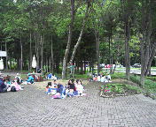 ビレッジに到着しました。昼食タイムです。焼きおにぎりはとても美味しい、と言っています。